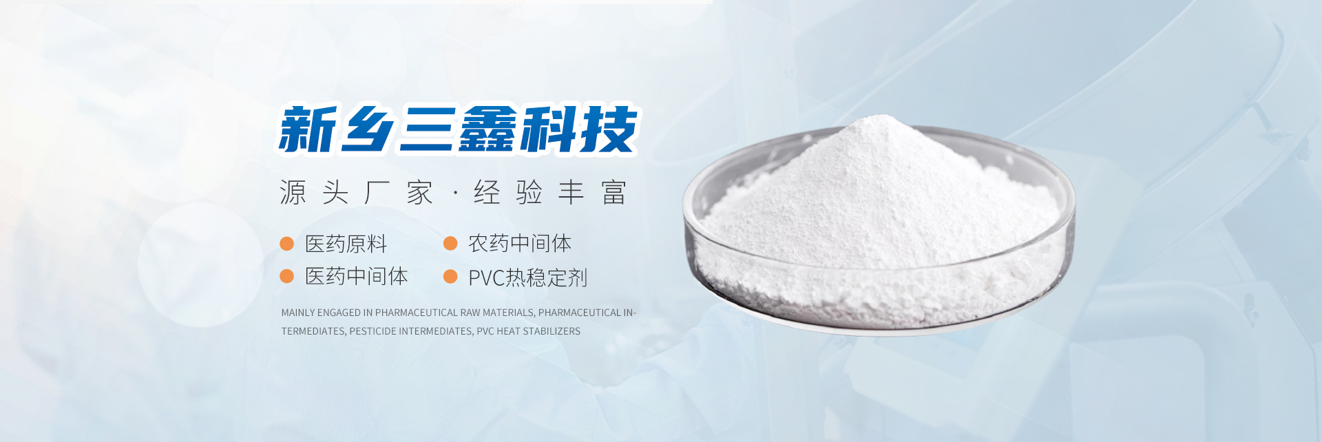 新鄉(xiāng)市三鑫科技有限公司主要從事醫(yī)藥原料、醫(yī)藥中間體、農(nóng)藥中間體、PVC熱穩(wěn)定劑、精細(xì)化學(xué)品和有機(jī)中間體。